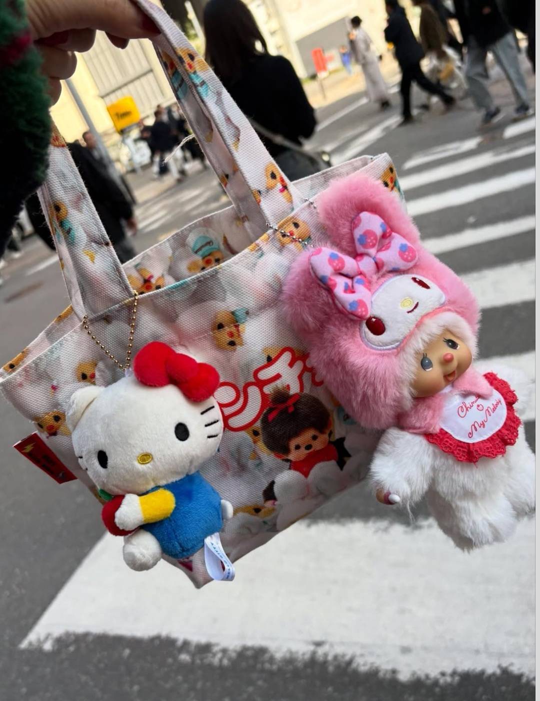กระเป๋าผ้าแคนวาสขนาดเล็ก พิมพ์ลาย Monchhichi 2 ด้าน เนื้อผ้าหนา มีช่องเล็กด้านในกระเป๋าจุของได้เยอะ สายสามารถสะพายไหล่ได้